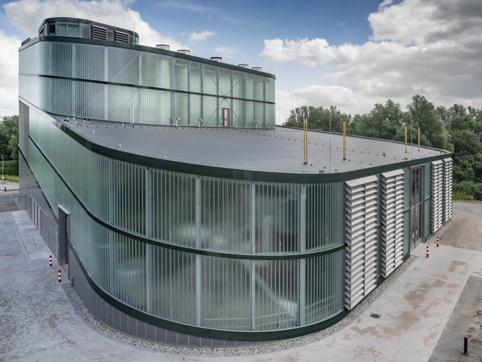 De hulpwarmtecentrale in Amsterdam slaat overtollige warmte op en geeft warmte af wanneer de vraag toeneemt. De centrale bestaat uit verschillende gebouwonderdelen die door de slimme toepassing van glas ogen als één transparant geheel. Wat een saai gebouw had kunnen worden is nu door het toepassen van glazen vinnen een verbluffend voorbeeld van de kracht van eenvoud, aldus de jury.